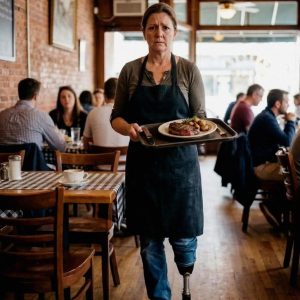 Every shift started the same way: click, thud, click, thud. My prosthetic leg echoed through the quiet, elegant restaurant, a sound that some noticed more than others….