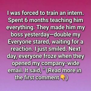 The morning the announcement was made, I sat at my desk with a polite smile frozen in place. For six months, I had trained a new intern…