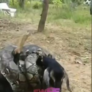 In a daring feat, a brave individual rescued a helpless dog from the clutches of an aggressive python.