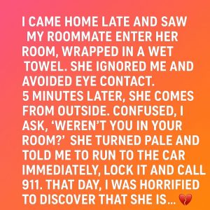 I came home late and saw my roommate enter her room, wrapped in a wet towel. She ignored me and avoided eye contact. Five minutes later, the…