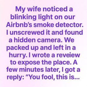 While staying at an Airbnb, my wife noticed a blinking light on the smoke detector. When I checked, I found a tiny hidden camera inside. Heart pounding,…