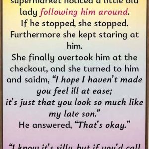 He felt her eyes before he saw her. An old woman, fragile but relentless, trailing his every step between the aisles. When she finally spoke, her words…