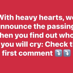 With heavy hearts, we announce the passing. When you find out who it is, you will cry: Check the first comment ⤵️⤵️