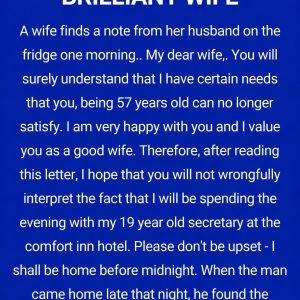 One morning, a wife found a note left on the fridge by her husband. In it, he calmly explained that while he still valued her as a…