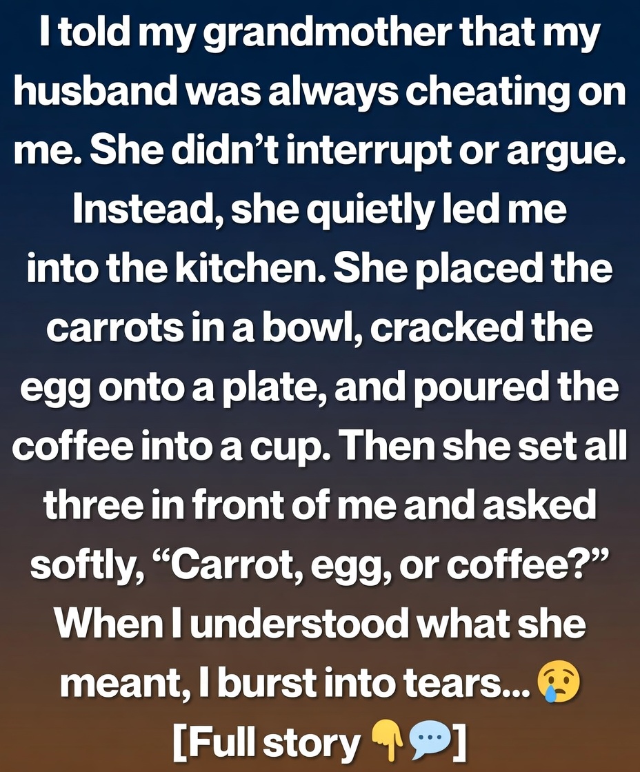 Her words stayed with me. I realized how each betrayal had slowly worn me down, softening me like the carrot, and how I was beginning to harden like the egg. But when she asked who I wanted to be, I found myself looking at the coffee. I told her I wanted to be like that—to let the pain shape me without taking away who I am. That night, lying in my old room and listening to the rain, I made a quiet promise: I would walk away from the hurt without losing my strength or kindness. Life would always bring its challenges, but from that moment on, I chose to be the coffee. READ MORE BELOW