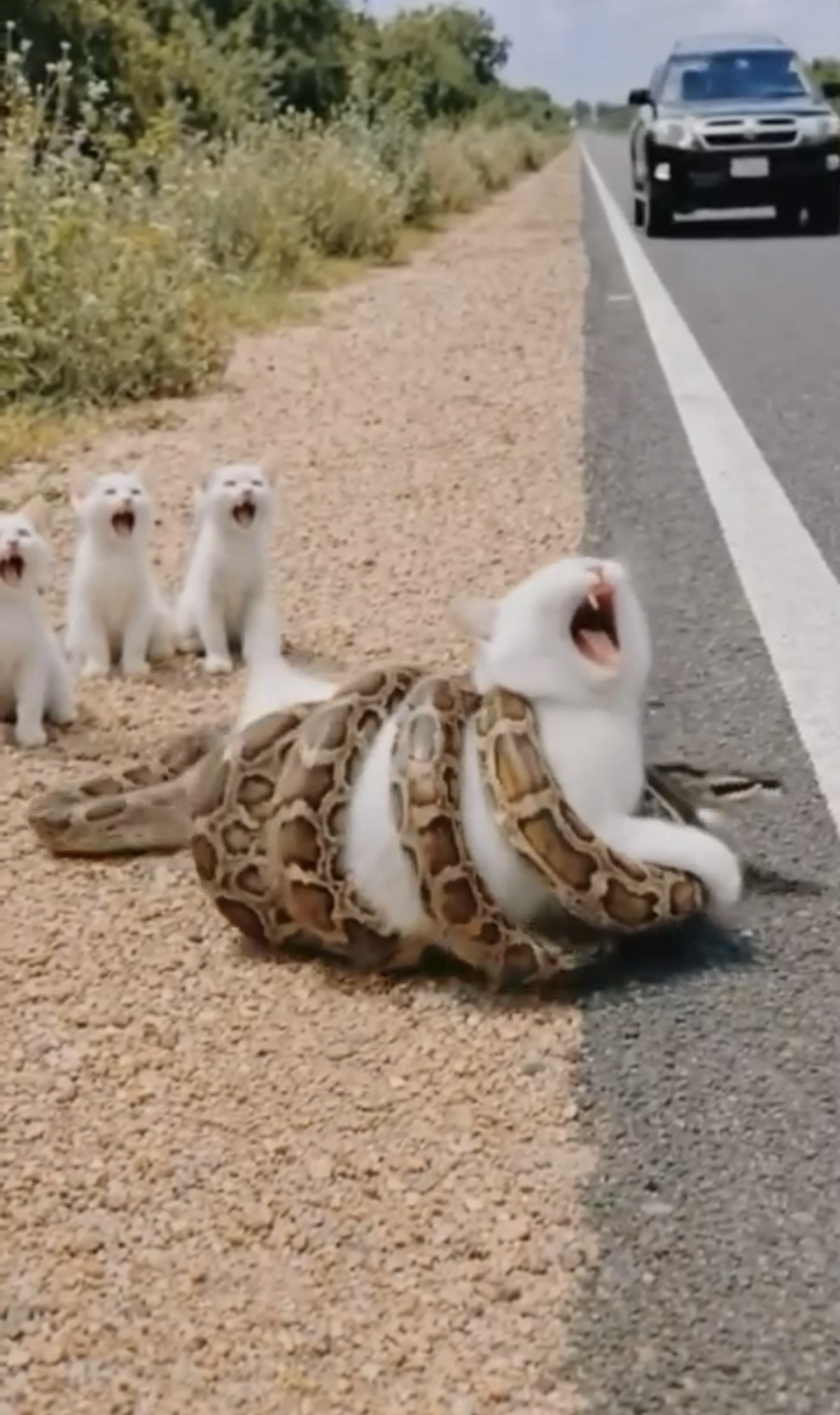 helpless cat from the clutches of an aggressive python.