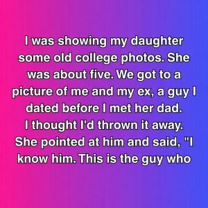 I was showing my daughter some old college photos when we came across one of me and Nico, an ex from before I met her dad. I…
