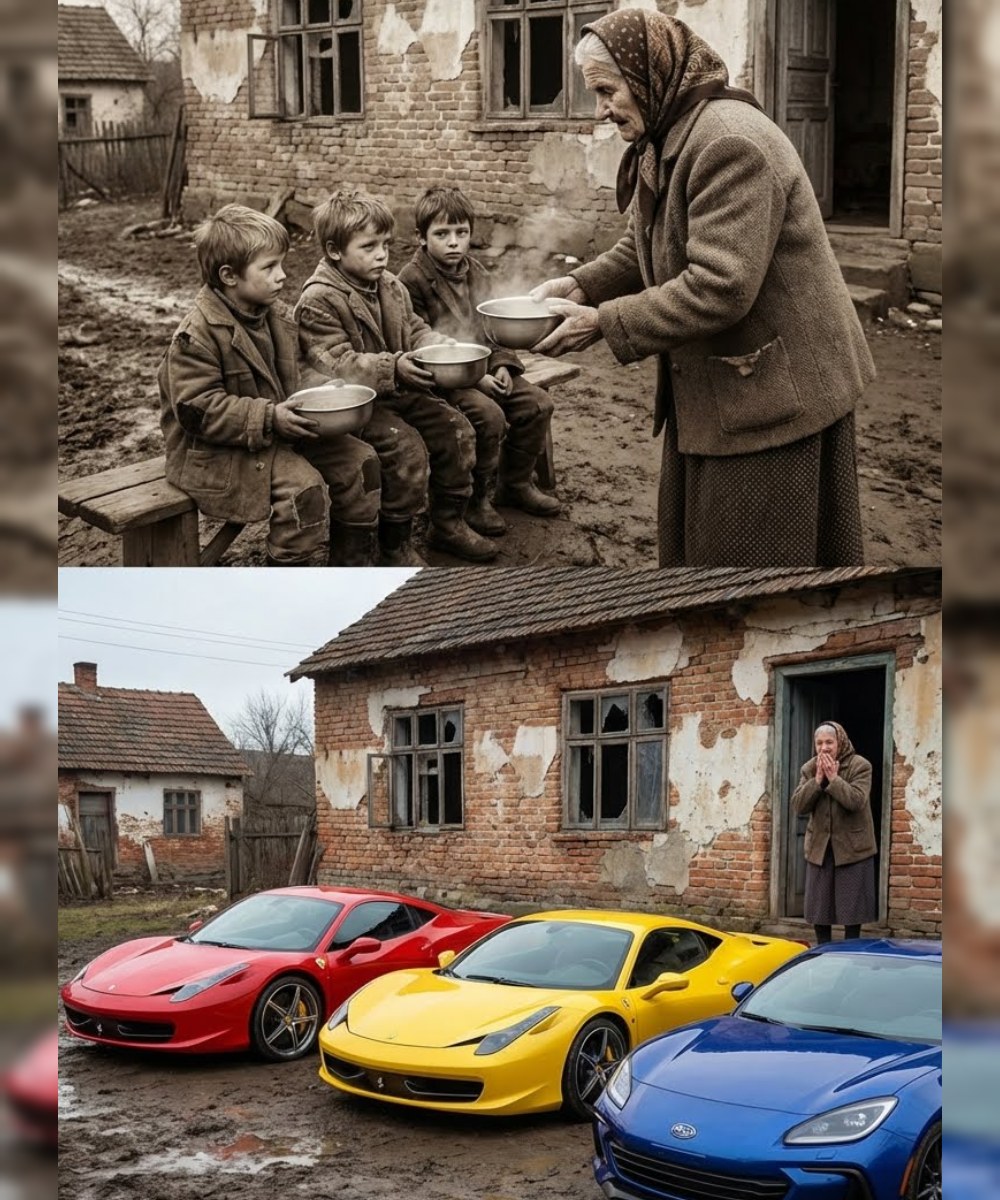 Twenty years later, three luxury supercars stopped in front of her tent.