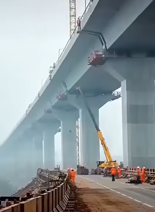 A major elevated highway under construction recently experienced severe structural instability, forcing workers to evacuate immediately.