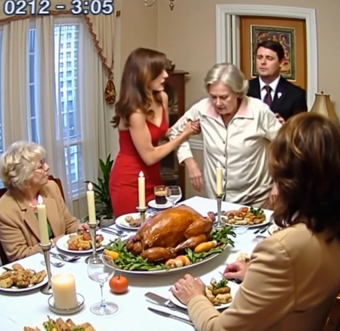 The pull was sudden, vicious, and utterly degrading—not a gentle nudge, not a polite request whispered across the linen tablecloth, but a hard, brutal yank on my left arm that brought me stumbling out of the high-backed dining chair. The sound of silverware clattering against heirloom porcelain was the only immediate disruption to the silence that had fallen over the Thanksgiving table.