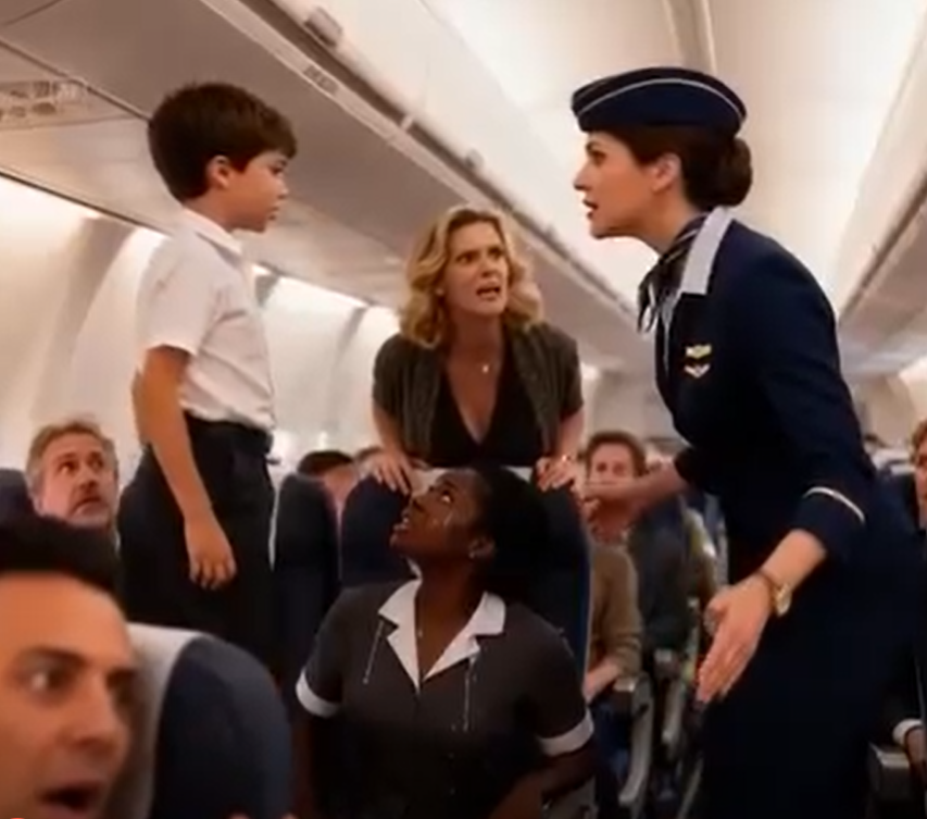 The boy’s mother dismissed Amara’s request and openly blamed her for the disturbance. When a flight attendant stepped in to help, the mother’s behavior worsened. Cabin tension grew, and other passengers became visibly uncomfortable.
