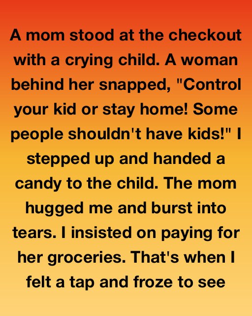 I reached into the impulse rack and grabbed a small strawberry candy, knelt slightly, and held it out. I made a ridiculous face—the kind that makes no sense but sometimes works. The boy hiccupped mid-scream, eyes locking onto the bright wrapper. The crying didn’t vanish instantly, but it paused. Just long enough.