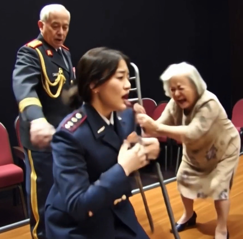 It was as if the entire room held its breath, waiting for the chaos to unravel further. The disbelief on the faces of my fellow soldiers and the audience was palpable—a stark contrast to the wild, untamed anger etched across Linda’s features. This was supposed to be a day of commemoration, a day of honor, yet the ceremony had descended into a scene reminiscent of a Shakespearean tragedy.