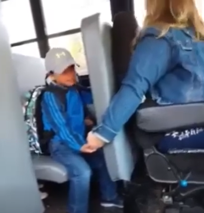 The bus didn’t move. Miss Carmen, our long-time driver, reached her hand back. No words. No rush. Just a hand waiting for him. Calvin grabbed it, clinging like it was his lifeline. And she held on.