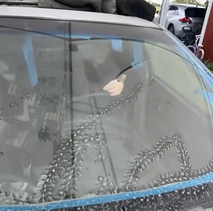 Scattered across the windshield were tiny, delicate marks, each one perfectly defined yet subtly unique, shimmering faintly in the early sunlight.