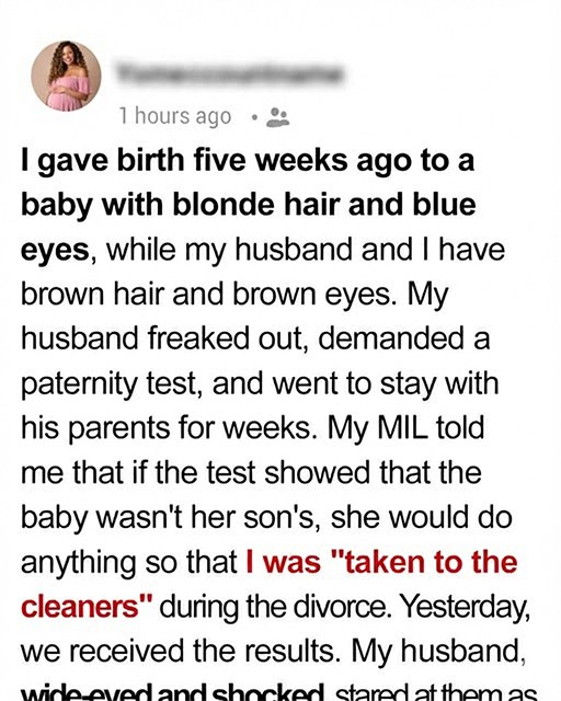 He stared at our daughter with an intensity that made my stomach tighten. Her eyes, still adjusting to the light, were a soft, pale blue. Wisps of light blond hair framed her small head. She did not look like either of us. Marcus and I both had dark hair, dark eyes, and olive-toned skin.