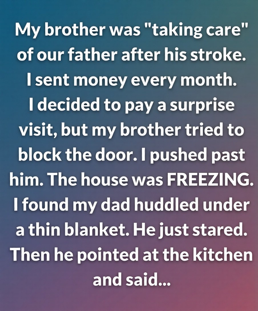 Not just chilly—biting, bone-deep cold. The kind that makes your lungs sting when you breathe. My father was curled into himself on the couch, wrapped in a thin blanket that looked damp. He wasn’t watching TV. He wasn’t sleeping.