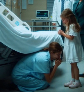 Under the dim shadow of the hospital bed, I held my breath, my heart pounding in my ears, drowning out the sterile beeps and clicks of hospital machinery. Emily, bless her courage, stayed crouched beside the bed, her small hand reaching to squeeze mine reassuringly. Her presence was a beacon of strength in a moment that felt increasingly surreal.