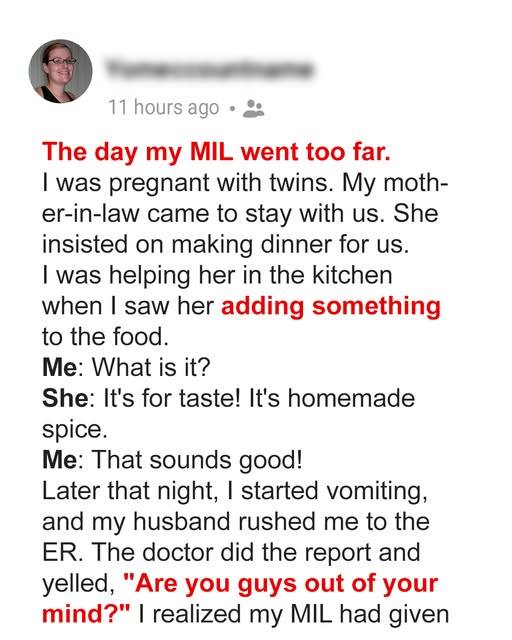 Melissa, pregnant with twins, invited her mother-in-law, Penny, to help during her difficult pregnancy. However, tensions arose when Penny added a potentially harmful ingredient to Melissa’s food. Melissa fell ill, prompting a trip to the ER where doctors confirmed the twins were fine but detected harmful substances in her system. Confronted, Penny defended her actions as a traditional remedy. Concerned for their safety, Melissa and Harry decided to send Penny home, prioritizing their family’s well-being over hurt feelings. Despite Penny’s initial resentment, they hope for reconciliation once the twins are born.