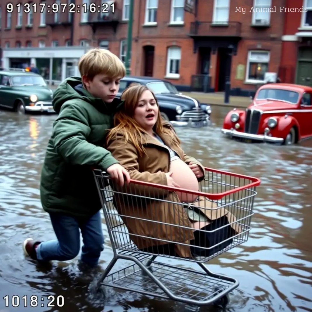 She was heavily pregnant, drenched and trembling, struggling just to remain upright. Her phone lay submerged beside her, useless. One shoe was missing. Each attempt to stand ended the same way—pain contorting her face before she collapsed again, breathless.