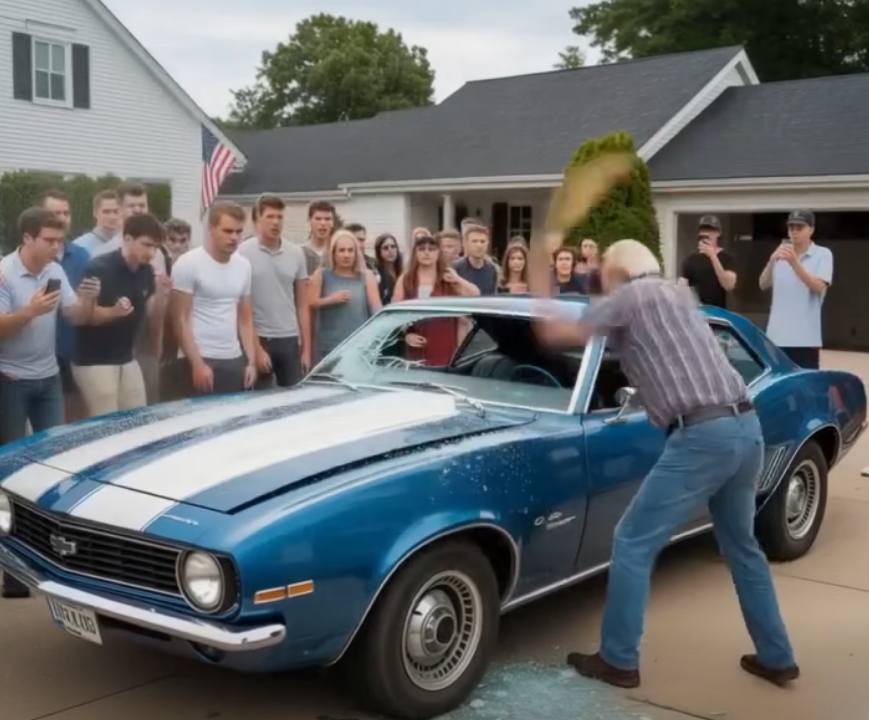 Dad struck again, smashing the headlights. Shattered glass scattered across the driveway like confetti from a nightmare. Tyler stood frozen, tears streaming down his face, his crying turning raw and desperate.