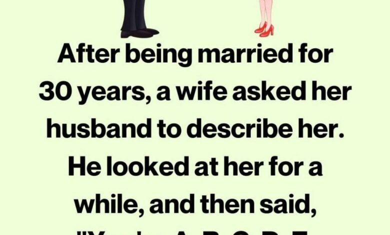 The wife blinked, caught off guard by the alphabetical crypticness of his response. It wasn’t the poetic stanza she might have expected, nor was it a simple “wonderful” or “kind.” It was a puzzle. “What on earth does that mean?” she asked, her curiosity piqued and a playful grin beginning to tug at the corners of her mouth.