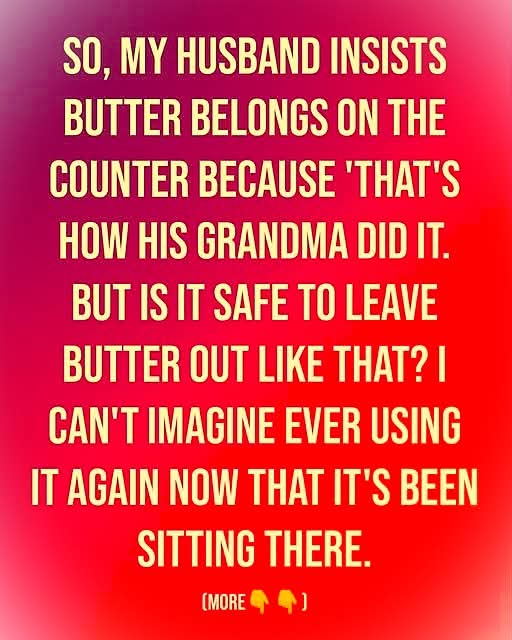 My husband, Braden, insists butter belongs on the counter. “That’s how Grandma Selma did it,” he says. But seeing it melt into a shiny puddle in our warm kitchen always made me uneasy. When I asked if he’d left it out again, he simply replied, “Of course. Grandma Selma always did.” Unsure, I texted my friend Odessa, who immediately warned me to toss it. From then on, that butter dish felt like a tiny danger zone. Braden happily used it; I stuck to olive oil.