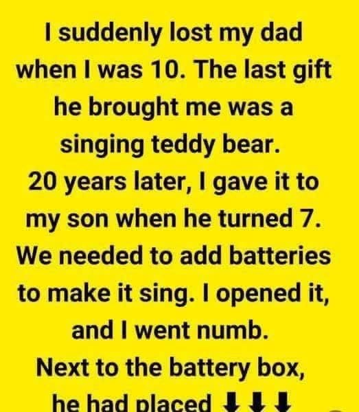 When I was 10 years old, I suddenly lost my dad. The last gift he gave me was a singing teddy bear, which I cherished. Twenty years later, when my son turned seven, I decided to pass the bear on to him.