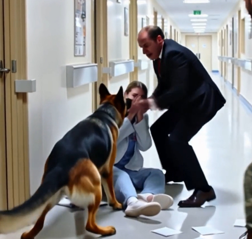 Across the hall, a man in plain clothes stood watching. At his side, a service dog in a black harness stood perfectly still, ears forward, waiting for a single command. Logan had no idea he had just attacked the one person his father feared most in this world.