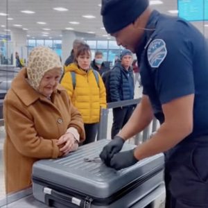 During the baggage inspection of an elderly woman, the security officer noticed something strange on