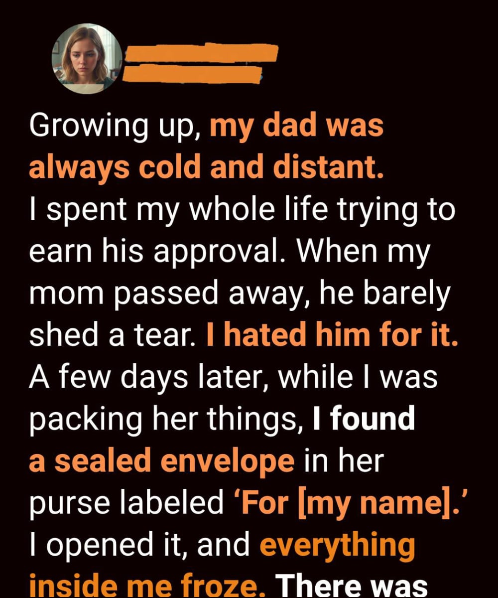 When I finally confronted him, he didn’t deny it. Instead, he sat down slowly and admitted he had known the truth from the very beginning. My mother had told him before I was even born. He explained that he had tried to move past her betrayal, believing love would be enough to make the pain disappear. But the betrayal never fully faded, and every time he looked at me and saw my mother’s face, the hurt returned. As he spoke, I saw him cry for the first time in my life, and the distant man from my childhood suddenly looked tired and human. In that moment I realized something important: even if he wasn’t my father by blood, he was the one who stayed, the one who raised me, and the one who never walked away. Blood may explain where I came from, but it doesn’t erase who chose to be there. READ MORE BELOW