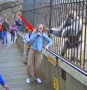 The footage, now viral, shows a seemingly innocuous moment spiraling into chaos. She leaned closer for a better look, her curiosity piqued by the gorilla’s remarkable presence. The enclosure was designed to be safe and secure, with barriers in place to prevent such incidents. But as she moved closer, the animal reached out first, breaching the boundary meant to maintain a safe distance between the two worlds.