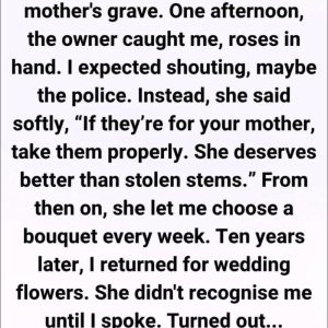 At 12, I stole flowers to place on my mother’s grave — a decade later, I came back as a bride and the florist told me a secret I never expected.