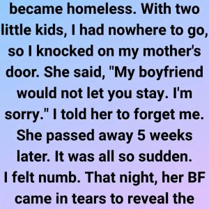 I didn’t expect to see her again. Life went on as usual—work, bills, and the constant rhythm of raising four kids alone. But the next morning, there was a knock at the door. When I opened it, a man in a suit stood beside a black Mercedes, and next to him was the same woman from the store, smiling softly. My kids peeked from behind me, curious and quiet for once.