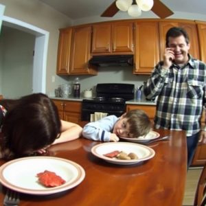 My husband cooked dinner, and right after my son and I ate, we collapsed. Pretending