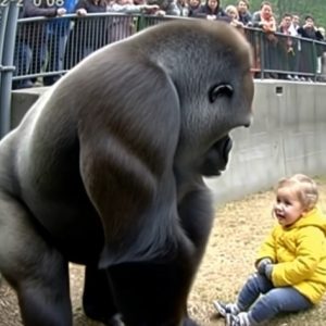 The gorilla paused, his powerful hand hovering in the air. It was as if he sensed the collective tension, the fear radiating from above, and the delicate…