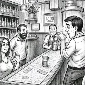 A guy walks into a bar and says to the bartender, “See that glass at the end of the bar? I bet you $100 I can pee…