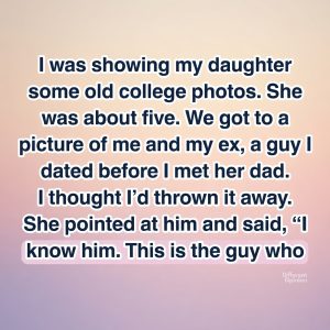 I was showing my daughter some old college photos when we came across one of me and Nico, an ex from before I met her dad. I…